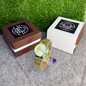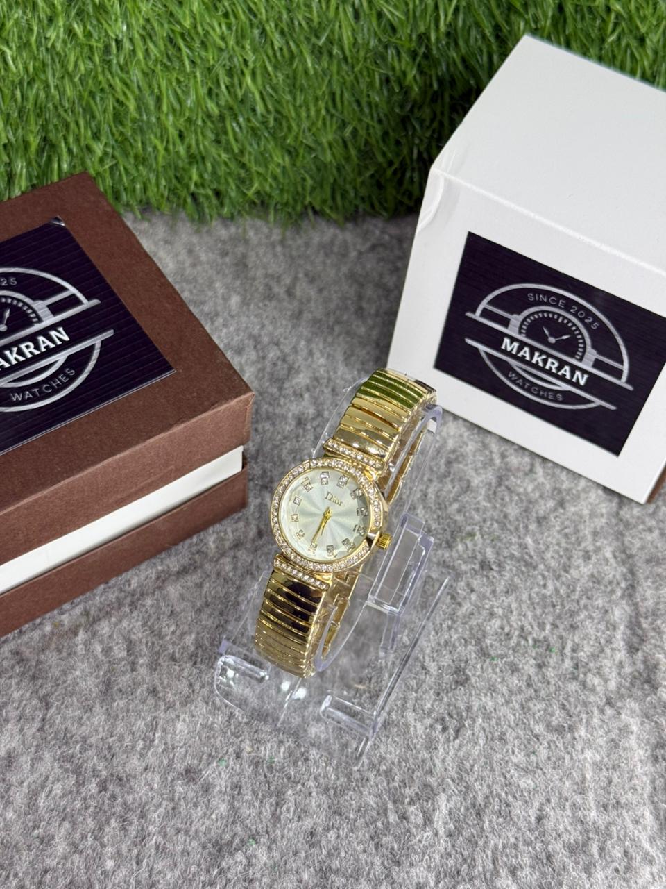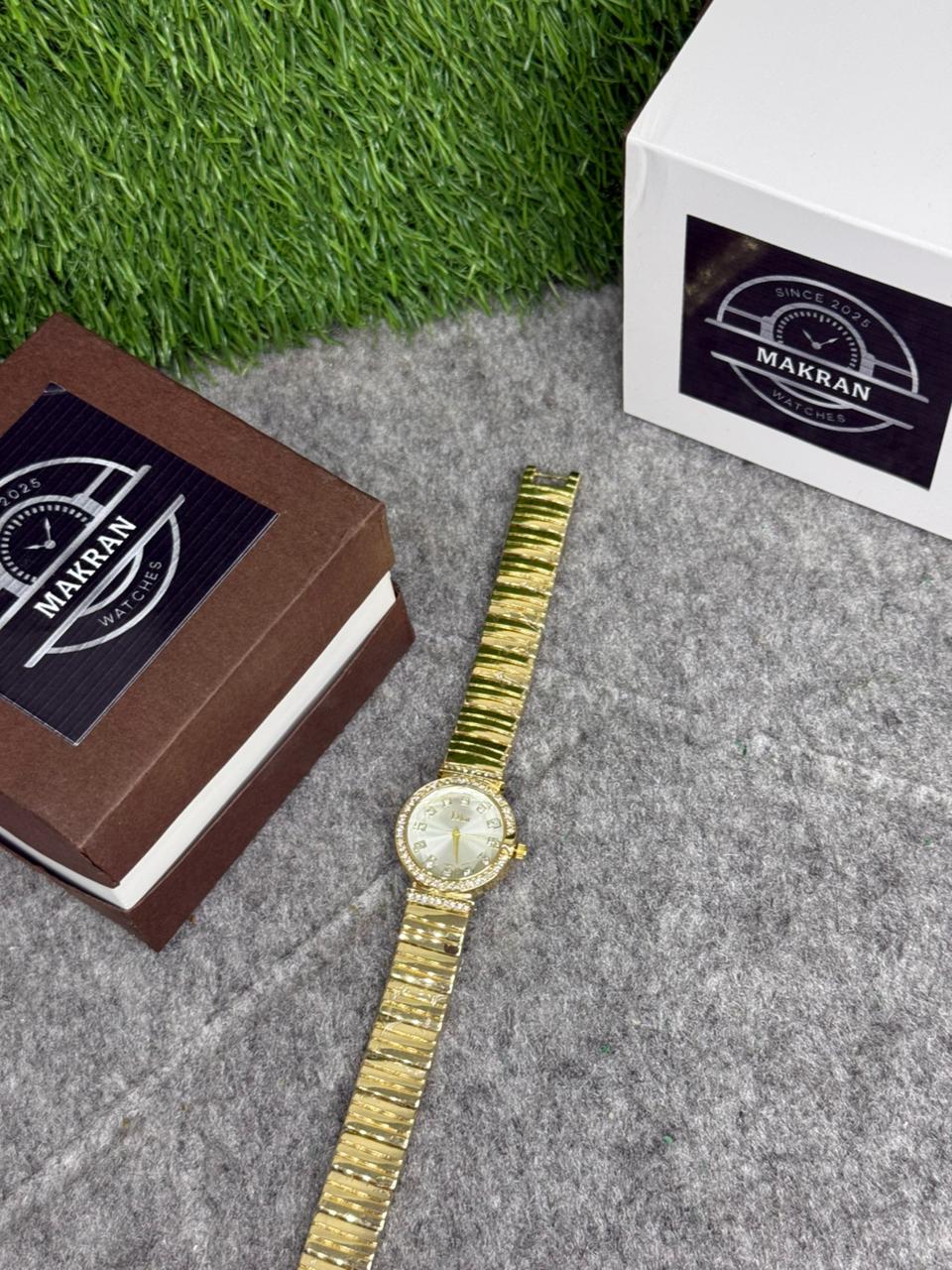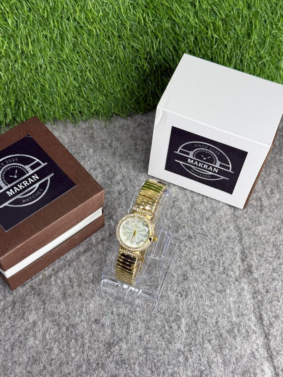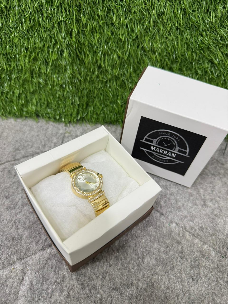 Makran Elegant Gold Women’s Watch – Luxury Diamond Bezel Quartz Bracelet Watch