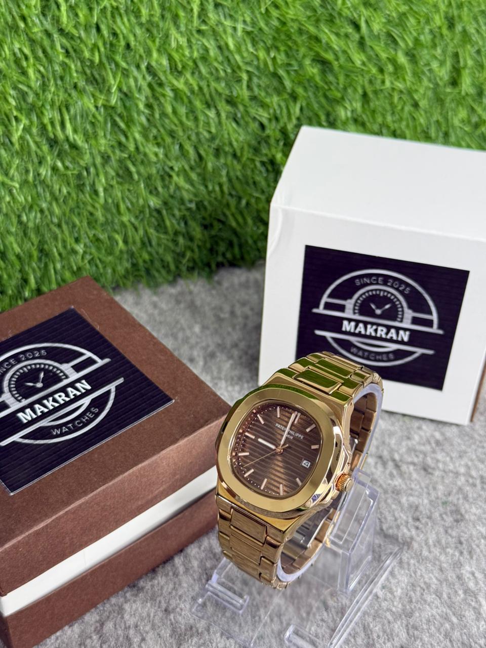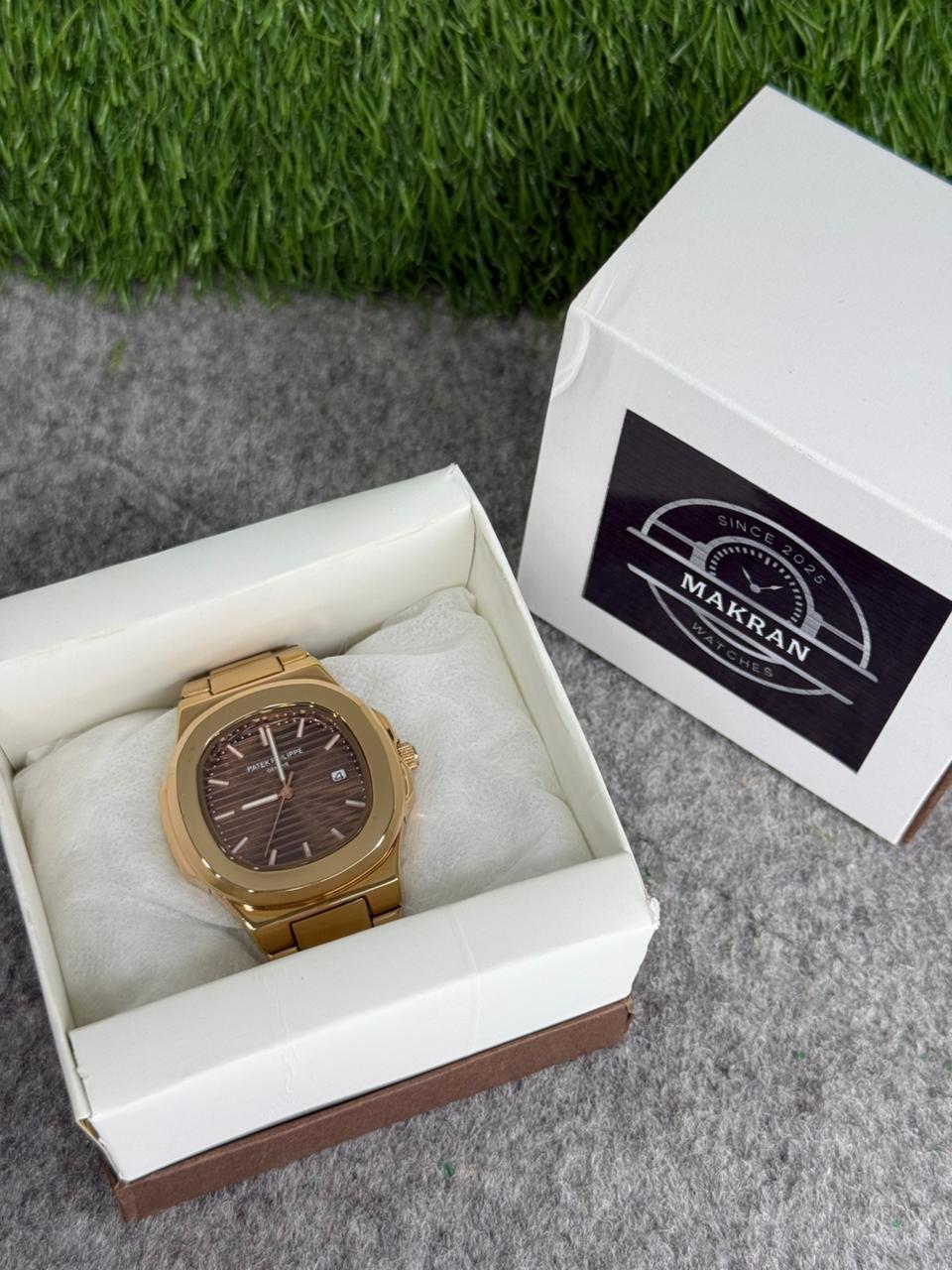 Patek Philippe Style Gold-Tone Luxury Men’s Watch – Classic Brown Dial